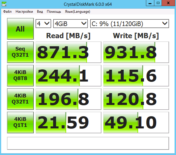 CrystalDiskMark - небольшая бесплатная программа, предназначенная для сравнительного тестирования быстродействия жестких дисков. Позволяет измерить скорость чтения и записи данных.