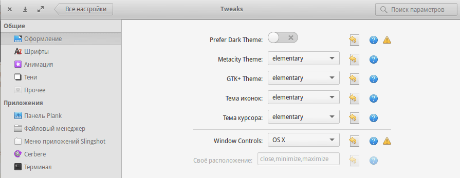 После установки, Elementary Tweaks будет доступен в списке настроек системы.