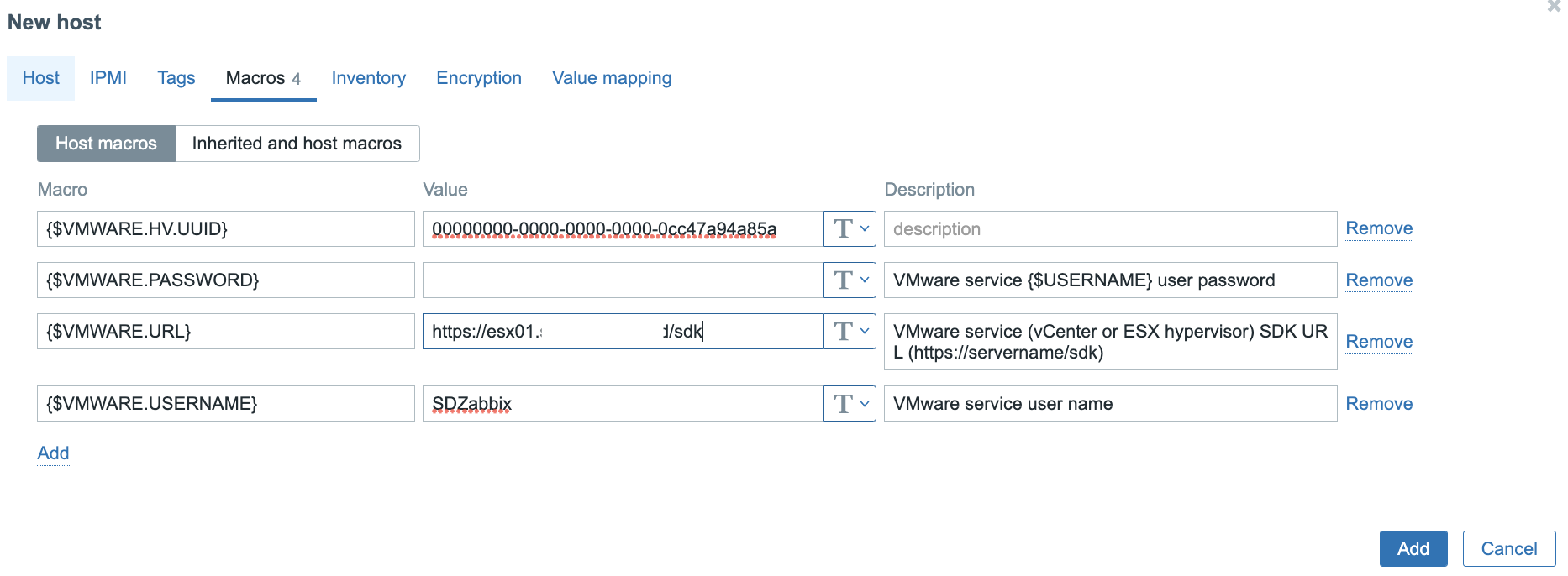 • {$VMWARE.HV.UUID} - ранее полученный UUID хоста;